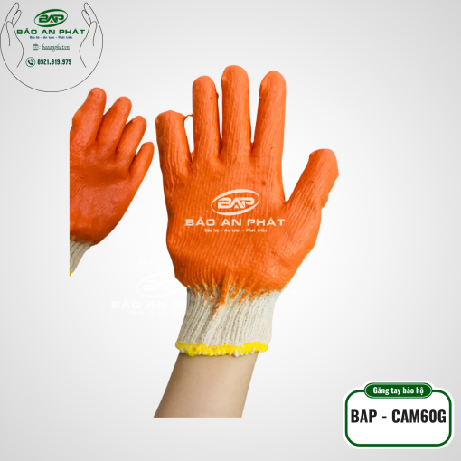 Găng tay sơn cam phủ cao su màu cam, có độ bền và độ an toàn cao bảo vệ tay, thông thoáng hạn chế bị ấp mồ hôi khi làm việc.